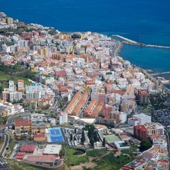 Santa Cruz de La Palma si estende lungo la costa orientale dell'isola di La Palma, con case coloniali e balconi in legno affacciati sull'Oceano Atlantico.