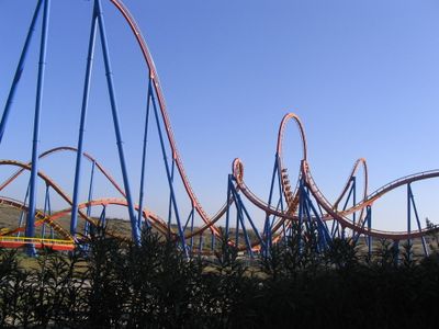 Superman La Atracción de Acero presenta sette inversioni su un percorso di 1.100 metri, raggiungendo velocità di 100 chilometri orari.