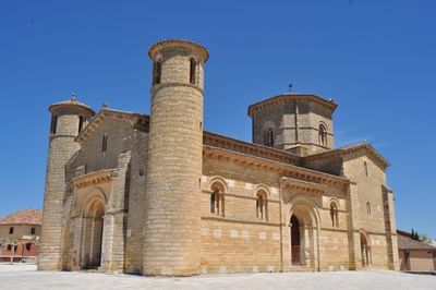 La Chiesa di San Martino di Tours è un edificio di culto romanico a Frómista, Spagna, costruito in pietra squadrata e inserito sia nel Patrimonio Mondiale che nella lista dei beni in pericolo. La pianta basilicale presenta tre navate con colonne, absidi semicircolari e una cupola ottagonale sopra il transetto.
