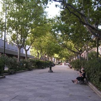 Il Paseo de Sagasta si estende per 800 metri dalla Plaza Paraíso al Paseo Cuéllar, mostrando edifici residenziali di diverse epoche architettoniche.