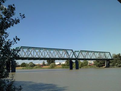 Puente de San Juan de Aznalfarache, Ponte in acciaio sul fiume Guadalquivir, Spagna.