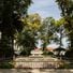 Il giardino ospita numerose specie di alberi nativi ed esotici, tra cui due olmi centenari che dominano lo spazio paesaggistico.