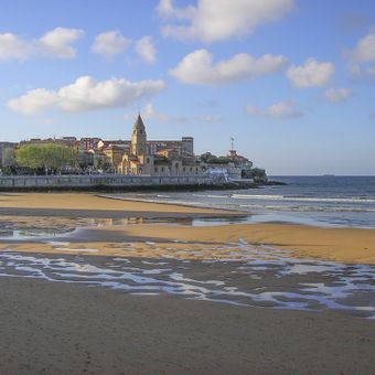 La spiaggia di sabbia dorata si estende per 1500 metri lungo la costa settentrionale di Gijón, costeggiata da un lungomare di tre chilometri.