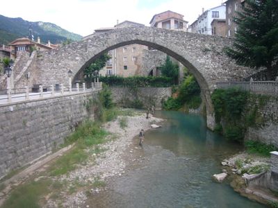 Pont Vell de la Pobla de Lillet, medieval bridge over the river Llobregat in the town of La Pobla de Lillet