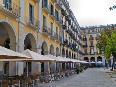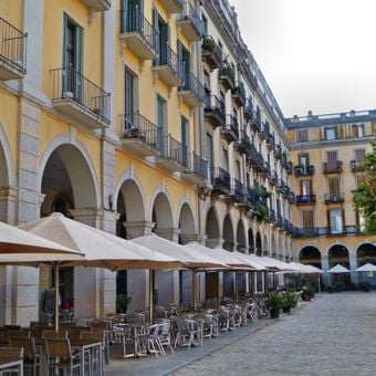 Plaça de la Independència, Piazza neoclassica a Girona, Spagna.