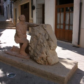 El riberer, escultura de pedra que commemora la partida dels riberers, jornalers de Benissa