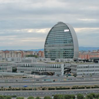 Il sito ha integrato otto edifici per uffici incompiuti durante la sua costruzione dal 2007 al 2015, segnando una trasformazione nel distretto finanziario di Madrid.