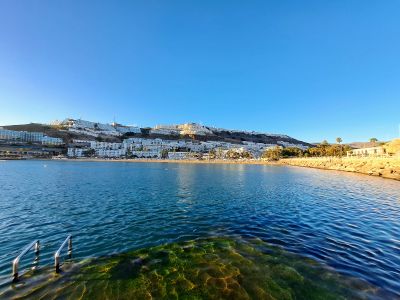 La Playa de Puerto Rico si estende per 284 metri di lunghezza e 105 metri di larghezza, con acque protette e sabbia dorata sulla costa meridionale.