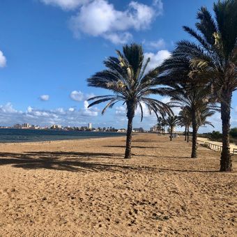 I ristoranti vicino alla spiaggia servono piatti tradizionali murciani tra cui paella di pesce fresco e vini regionali.