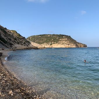 Situata tra Cap Prim e Cap Negre, questa spiaggia di ciottoli lunga 900 metri forma una baia a conchiglia circondata da scogliere.