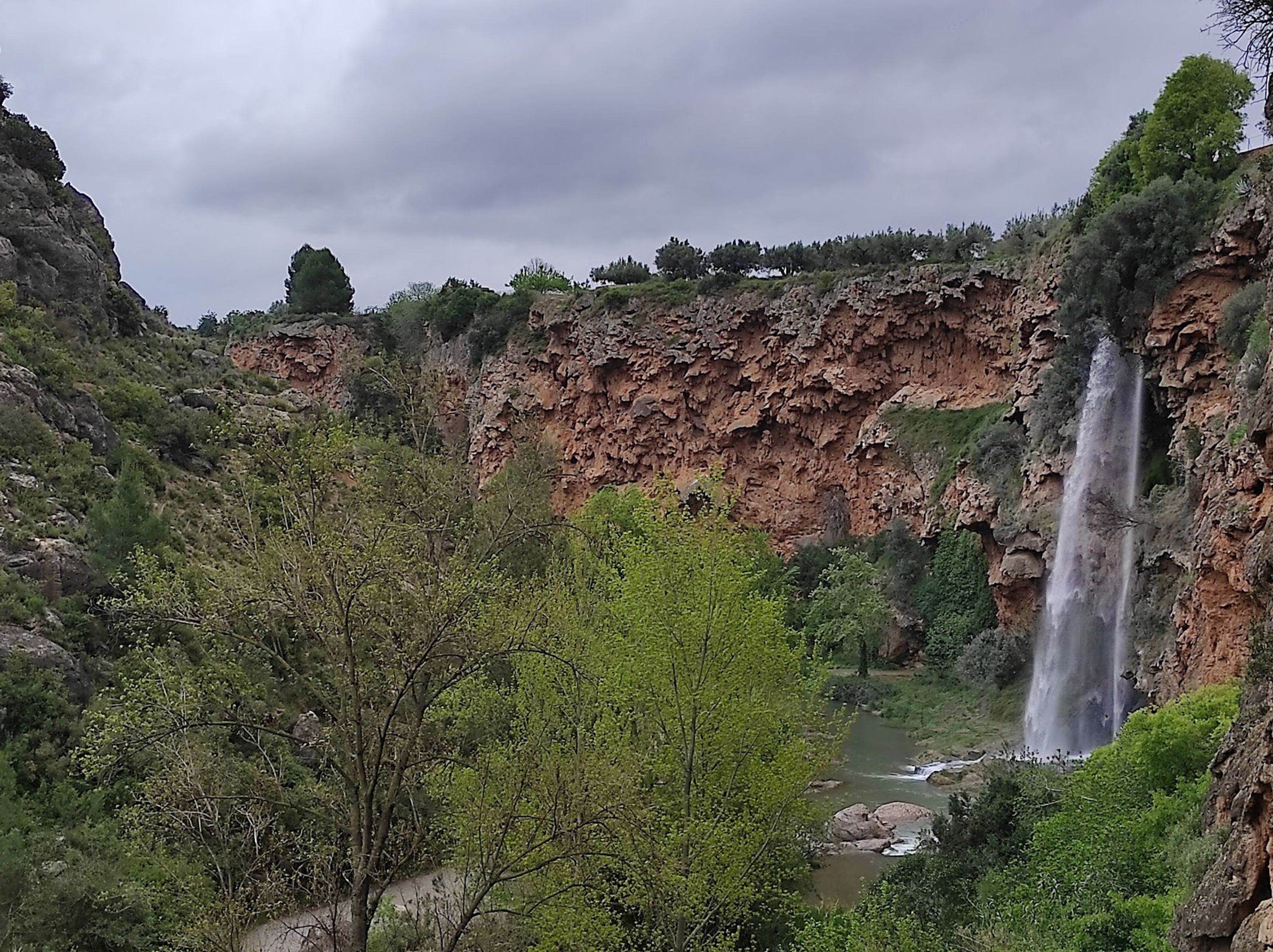 Il Salto de la Novia crea un salto verticale di 30 metri nel fiume Palancia, formando una cortina bianca d'acqua contro pareti calcaree.