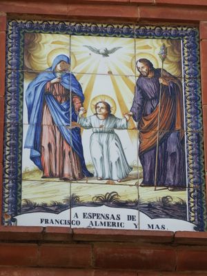Ceramic panel of the Sacred Family at Sant Josep street, ceramic panel in Torrent, Spain