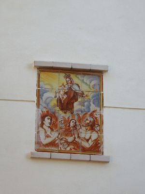 Ceramic panel of Our Lady of Mount Carmel and Souls in Purgatory, ceramic panel in Requena