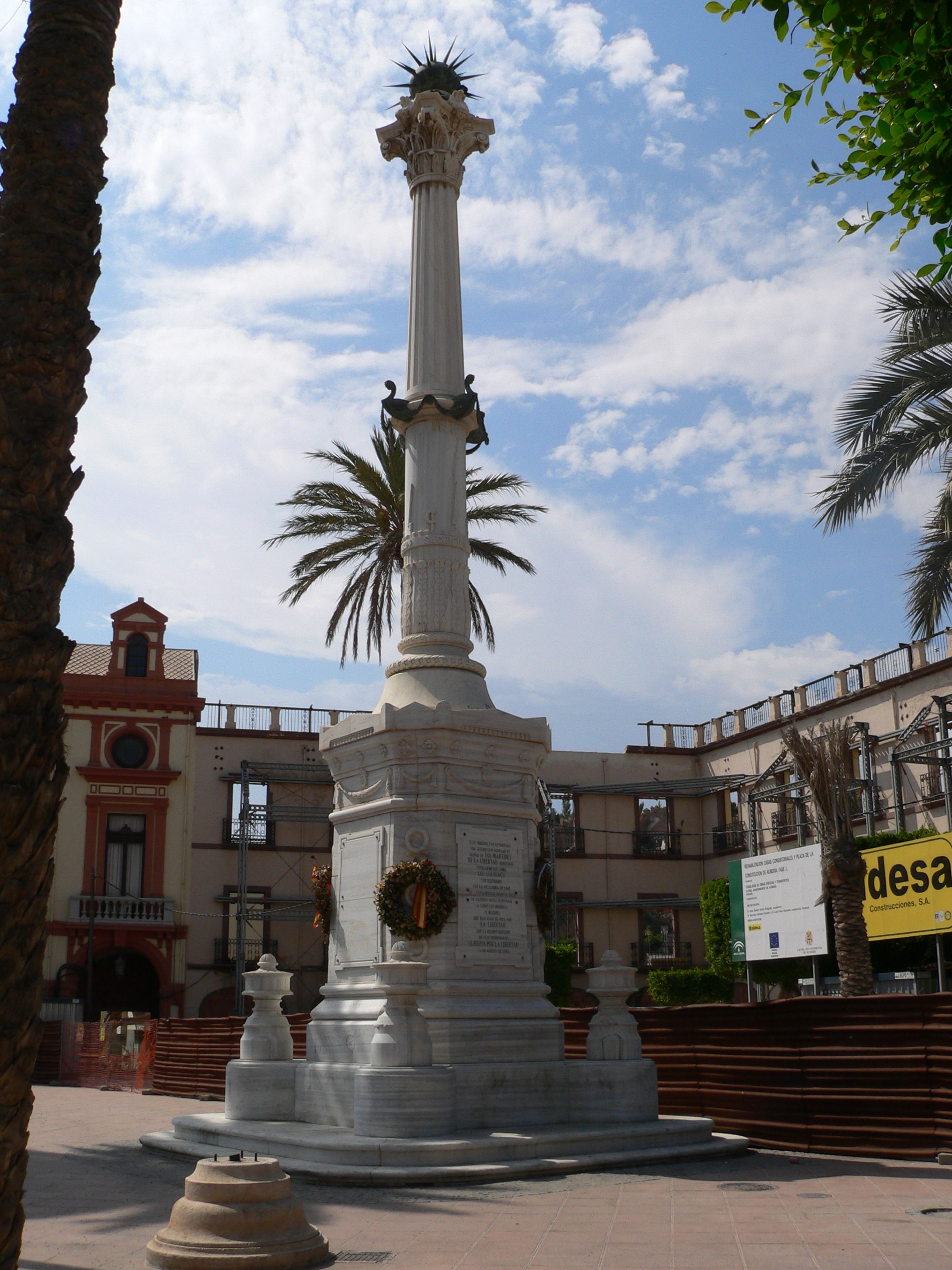 Monumento a los Mártires de la Libertad, Colonna commemorativa in Plaza de la Constitución, Almería, Spagna.