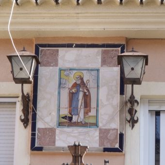 Ceramic panel of Saint Anthony at 12 Sant Antoni square