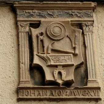 Relleu de ferrer a Cal Dalmau, gebouw in Moià, Spanje