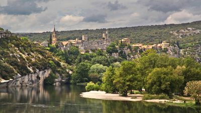 Il borgo sorge su una scogliera calcarea sopra il fiume Ardèche, con stradine strette e case tradizionali dai tetti rossi.