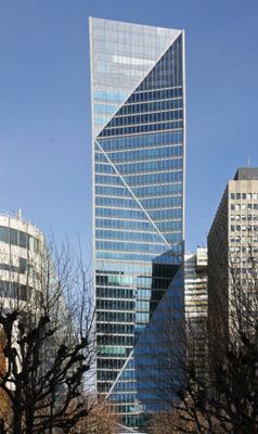 La torre incorpora un giardino d'inverno alto diciassette metri nella hall principale, unendo elementi naturali con architettura per uffici.