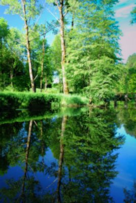 Il ruscello Ange scorre attraverso il paesaggio rurale di Brion, attraversando campi agricoli e vegetazione naturale lungo le sue sponde.