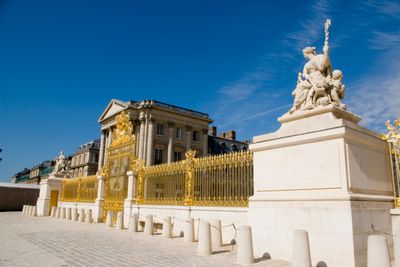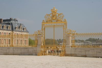 La Grille Royale presenta ferro battuto e foglie d'oro, con motivi metallici elaborati e due padiglioni di guardia ai lati dell'ingresso.