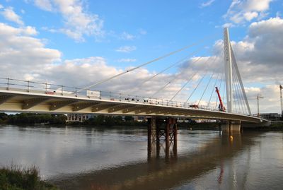 Il Ponte Eric-Tabarly si estende per 220 metri sul fiume Loira, con un pilone singolo alto 55 metri e una costruzione in acciaio.