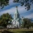 Il tempio ortodosso russo presenta elementi tradizionali di architettura ecclesiastica con cupole a cipolla e motivi decorativi sulle pareti esterne.