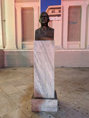 Bust of Aimilios Veakis, Piraeus, 1979 portrait by N. Perantinos, Piraeus Municipal Theater, Greece