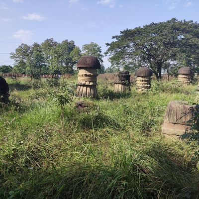 Il sito contiene numerosi pilastri di pietra con cupole a forma di fungo, alti tra 8 e 10 piedi, decorati con intagli di fiori di loto e animali.