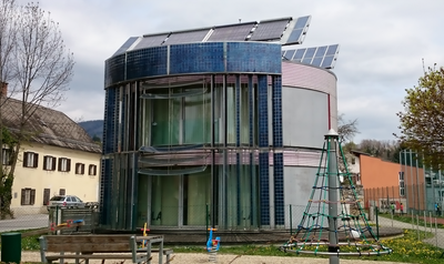 Roland Mosl ha sviluppato il concetto della casa Gemini nel 1991, portando alla costruzione di questo prototipo a Weiz durante la mostra nazionale dell'energia del 2001.