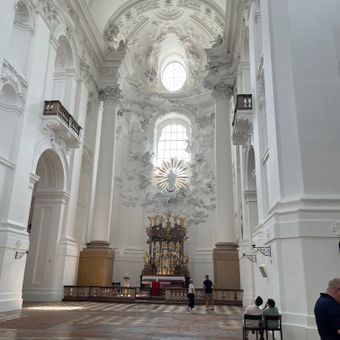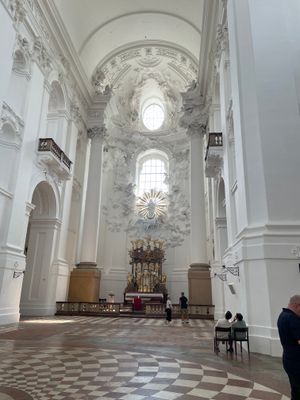 La Kollegienkirche presenta pareti bianche in tutto il suo interno e funge da chiesa universitaria e parrocchiale per la comunità locale.