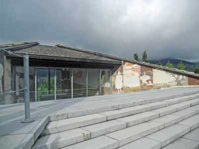 L'altare si trova davanti a una finestra nella parete posteriore, offrendo una vista diretta sul Ponte Europa, mentre affreschi di Karl Plattner decorano le pareti.