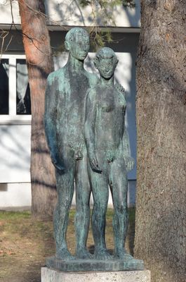 Junge Menschen, Kunstwerk von Siegfried Charoux in der Wohnhausanlage 164-182, Wien Liesing