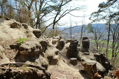 La formazione Chöpfi presenta pinnacoli di arenaria che emergono dal suolo, composti da molassa, arenaria e depositi di carbonato di calcio.