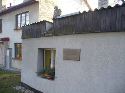 Pamětní deska Boleslava Jablonského na zdi fary v Radonicích