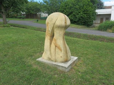 Kamenná plastika v u Komerční banky Lipové ulici v Mostě