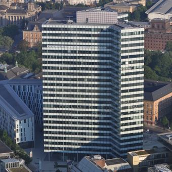 L'edificio contiene 40.000 metri quadrati di spazio per uffici, con sistemi moderni che riducono i costi operativi del cinquantatré percento.