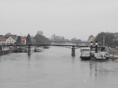 Questo ponte in acciaio dimostra l'evoluzione dei metodi costruttivi a Regensburg, creando un contrasto con il ponte medievale in pietra nelle vicinanze.