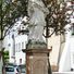 Heiligenfigur hl. Johann Nepomuk, barocke Steinfigur auf Marmorpostament, bezeichnet mit 1759