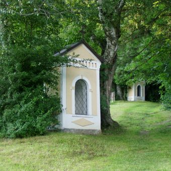 Kalvarienberg, kalvarienberg, mit Stationshäuschen und Lourdesgrotte, 1886/87