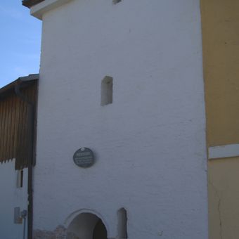 Ehemaliger Verteidigungsturm der Stadt, nach 1860 Pulverturm,, dreigeschossiger Walmdachbau, wohl 17. Jahrhundert