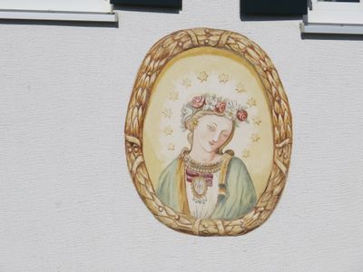 Wandbild am sog. Wanger-Hof, kopie der Wessobrunner Madonna im Medaillon, um 1800, mehrfach erneuert