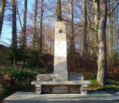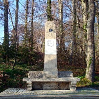 Denkmal, Denkmal für den Maler Carl Rottmann, Ruhebank und Pfeiler mit Inschrifttafeln. 1851 von Rottmanns Freunden errichtet