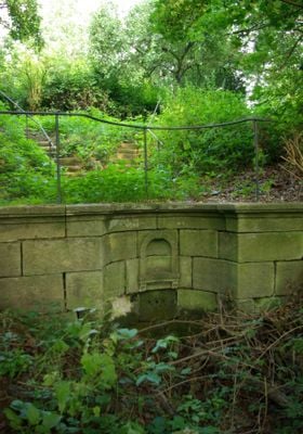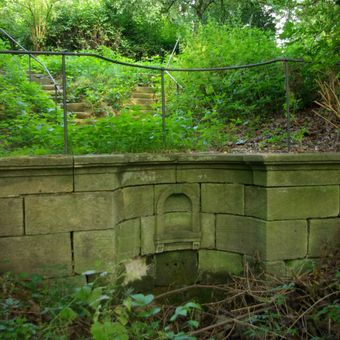 Schunckscher Garten, gartenanlage mit Brunnenanlagen bzw. Quellfassung, Gartenzugängen mit Torpfeilern, zweigeschossigem Gartenhaus, bezeichnet „1797“