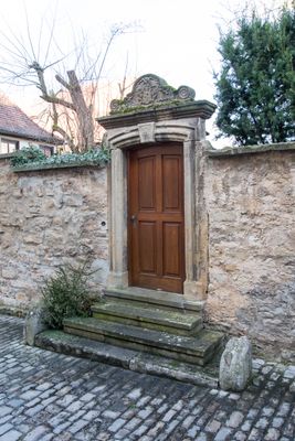 Fuchsengäßchen, Gartenmauer, massive Gartenmauer mit wappenbekröntem Portal und Freitreppe, 18. Jahrhundert