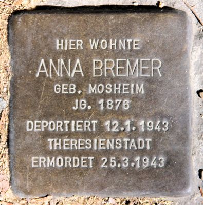 Stolperstein dedicated to Anna Bremer, Stolperstein in Berlin-Charlottenburg
