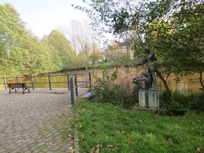 Wohnpark im Flemminggebiet, Wohngrün entlang eines kleinen Baches, zeitgleich mit dem Neubaugebiet aus den 1960er Jahren angelegt, original erhalten von stadtentwicklungsgeschichtlichem und gartengeschichtlichem Wert
