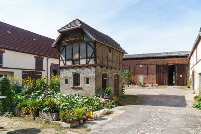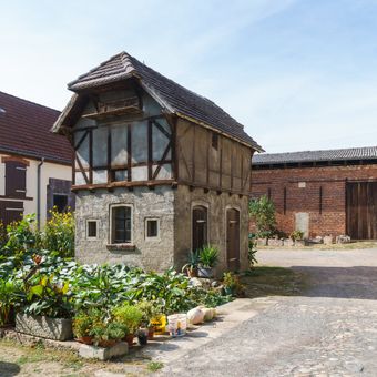 Lindenstraße 31, Taubenhaus und Einfriedung mit Toranlage (Torpfeiler) eines Dreiseithofes