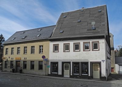 Kirchstraße 16, teils noch Fachwerk, ältestes erhaltenes Beispiel der Generation der Holzbauweise, baugeschichtlich von Bedeutung. Hohes, spitzes Dach, dreigeschossig, Obergeschoss Fachwerk