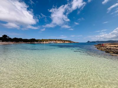 Questa baia, un tempo rifugio per pescatori locali, si è trasformata in meta turistica durante lo sviluppo costiero di Ibiza negli anni '60.