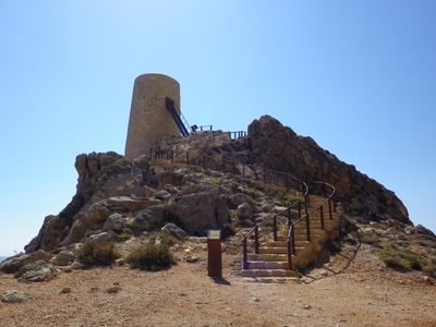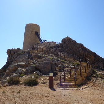 I sentieri segnalati da Mojácar conducono i visitatori alla torre, dove pannelli informativi spiegano la sua funzione storica.